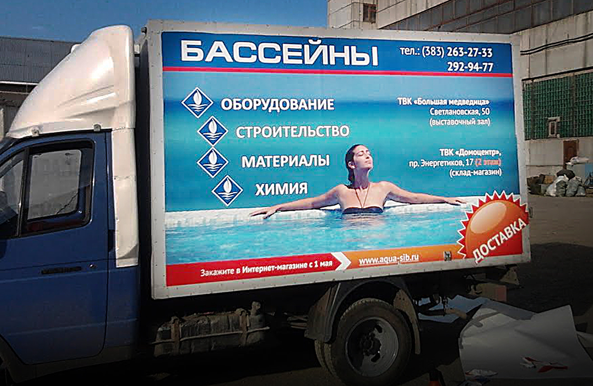 Целостность восприятия. Городской пассажирский транспорт имеет ограничения рекламной площади (пространство под окнами). Вследствие этого не всегда удается разместить полноценный рекламный модуль. Напротив, кузов грузового автомобиля являет собой цельную рекламную поверхность. Таким образом, Вы получаете своеобразный щит наружной рекламы, но мобильный и по цене гораздо дешевле, который будет эффективно работать для Вас в течение долгого времени.