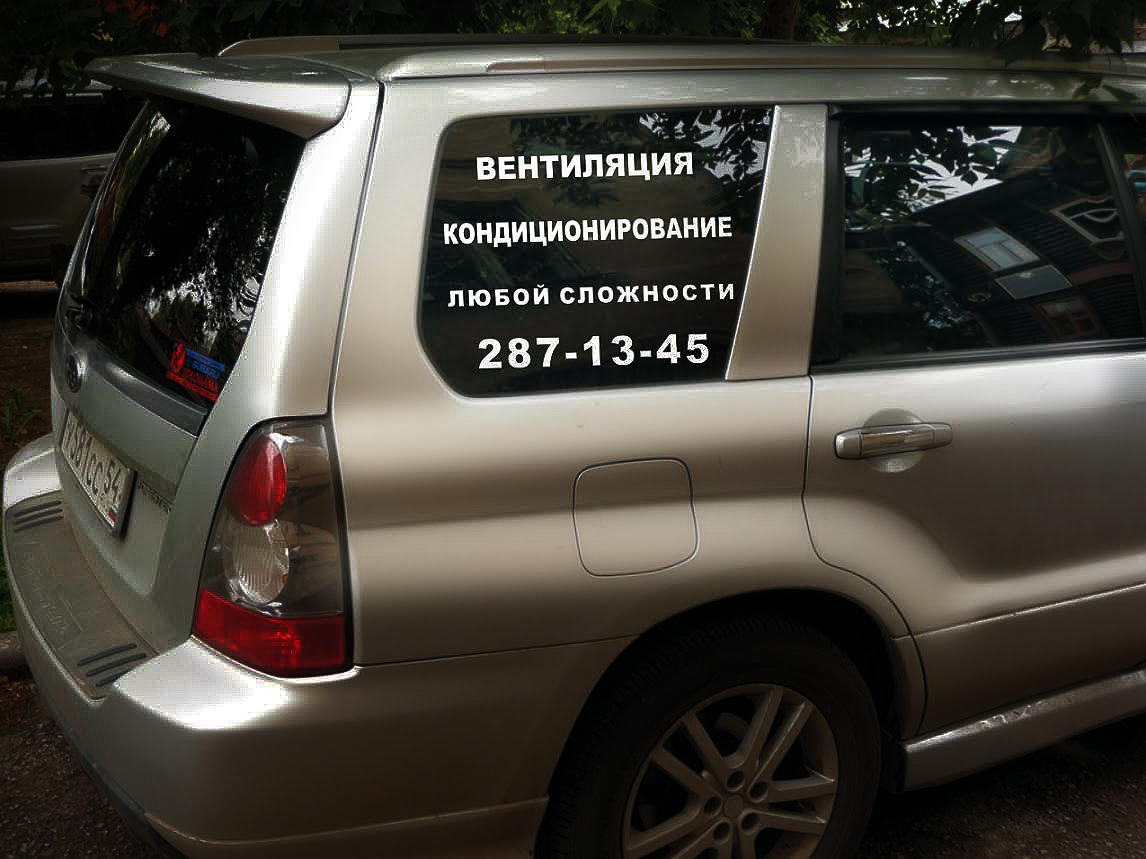 Не менее актуальна реклама и внутри салона, размещаемая посредством стикеров.